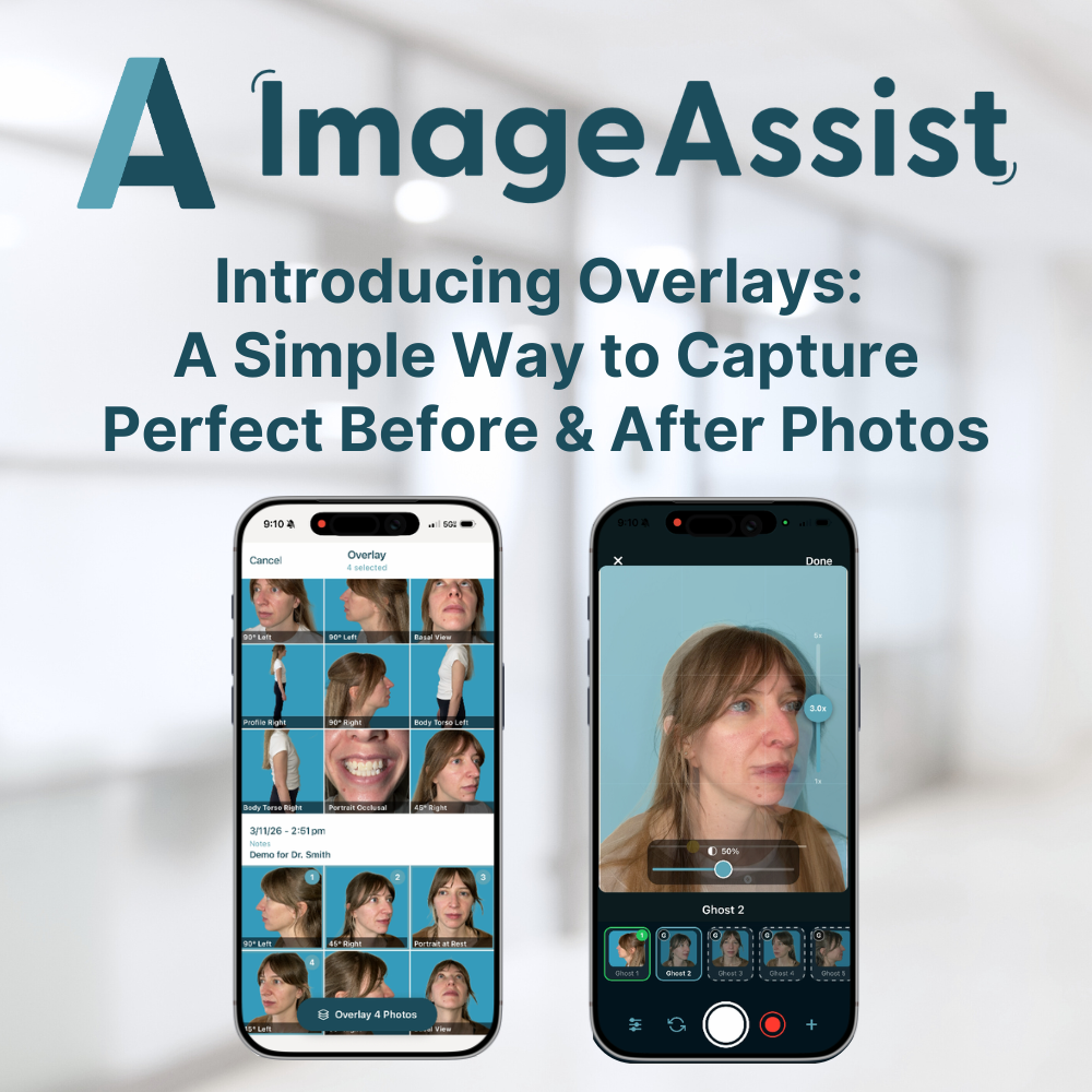 Overlays is a new ImageAssist feature that puts a semi-transparent ghost of any before photo directly in your camera viewfinder — so aligning your after shot is effortless, accurate, and consistent every single time. Here's how it works and what it means for your patient documentation.