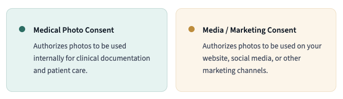 Not all consent is the same. ImageAssist captures two distinct consent types so your team always knows exactly what each patient has authorized: