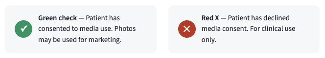 - Marketing clarity — Your front desk and marketing team instantly know which patients have authorized their photos for external use — no guessing, no risk.